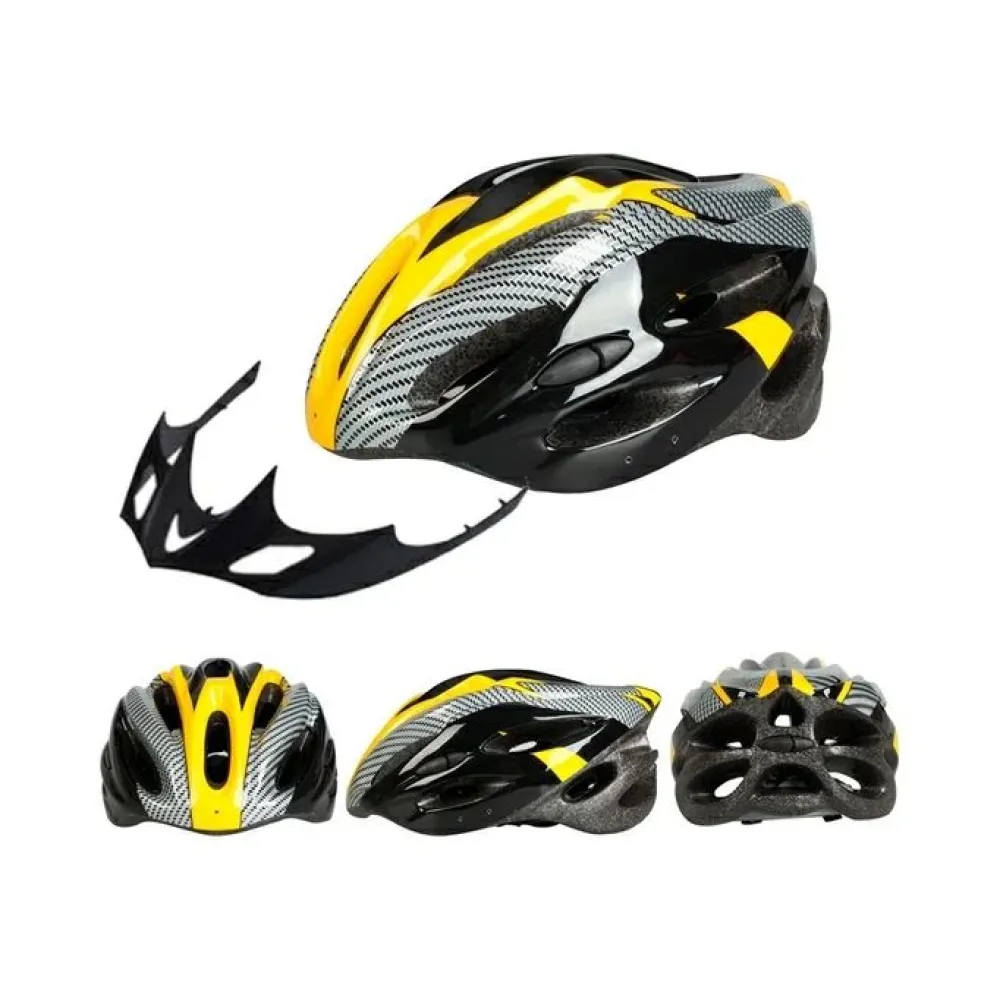 Шлем велосипедный AIR V23 черно-желтый – модный современный аксессуар вызвал восторг продвинутых и начинающих райдеров. Обтекаемая форма шлема с 24 поверхностными воздушными отверстиями выглядит стильно и заметно на фоне других ездоков. Поверхностный материал изготовления – поликарбонат и внутренний – полистирол обещают стопроцентную защищенность головы. Внутренняя подкладка легко снимается и стирается. Наличие съемного козырька обещает комфорт при продолжительной езде, исключает попадание пыли и грязи. Надежность фиксации гарантирована регулируемой высококачественной пряжкой. Аксессуар рассчитан на разновозрастную категорию ездоков. Продолжительной безопасной езды!