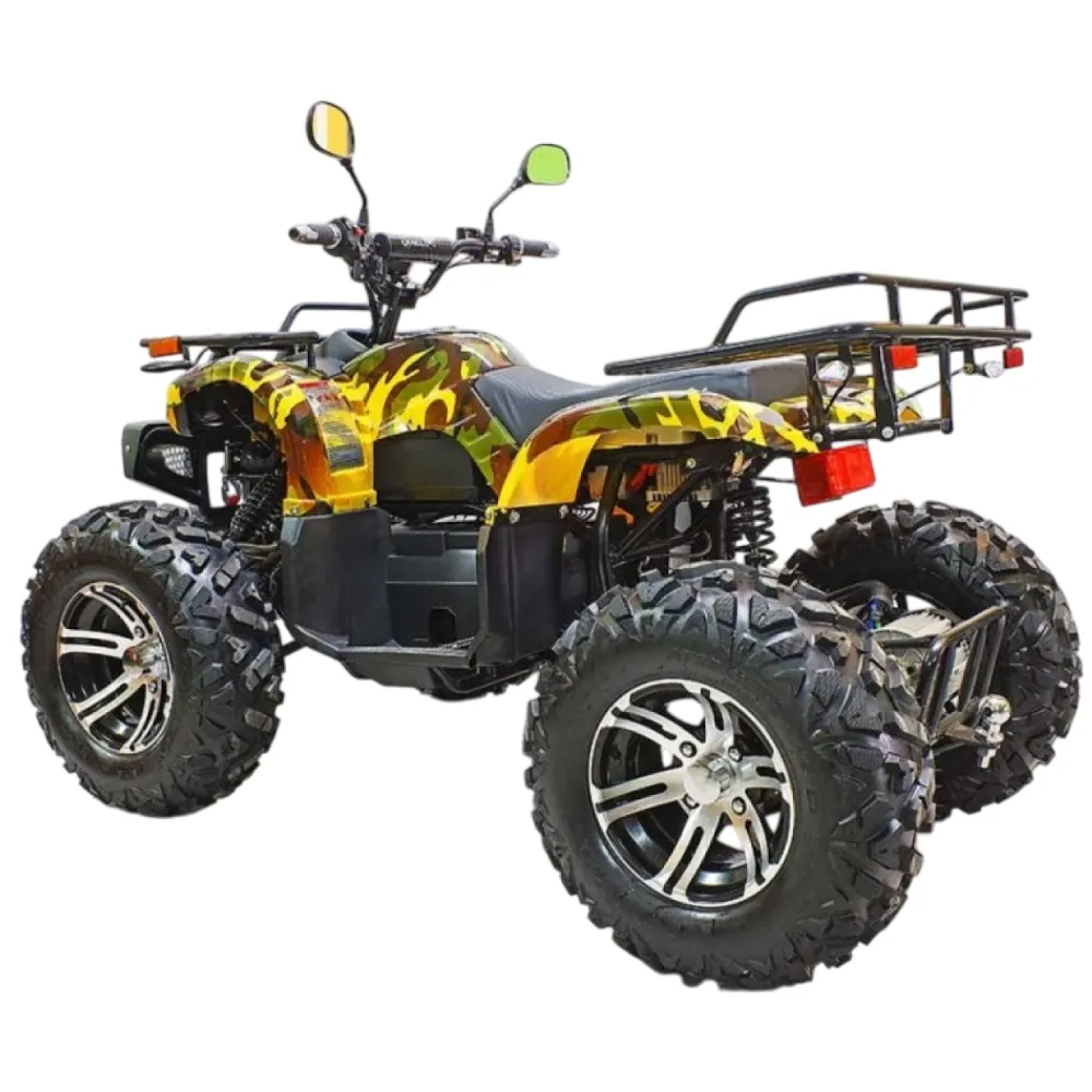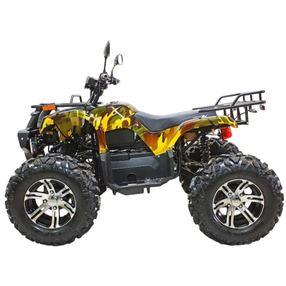 Выносливый, мощный, напористый – это всё про GreenCamel Sahara A3400 4x4. Прекрасная модель квадроцикла с впечатляющими характеристиками. Во многом он не уступит, а то и превзойдёт, целый ряд квадроцикл. Его внешний вид не оставит вас равнодушным. Он сочетает в себе агрессивность форм с яркой покраской в стиле армейского камуфляжа – настоящий стальной зверь.