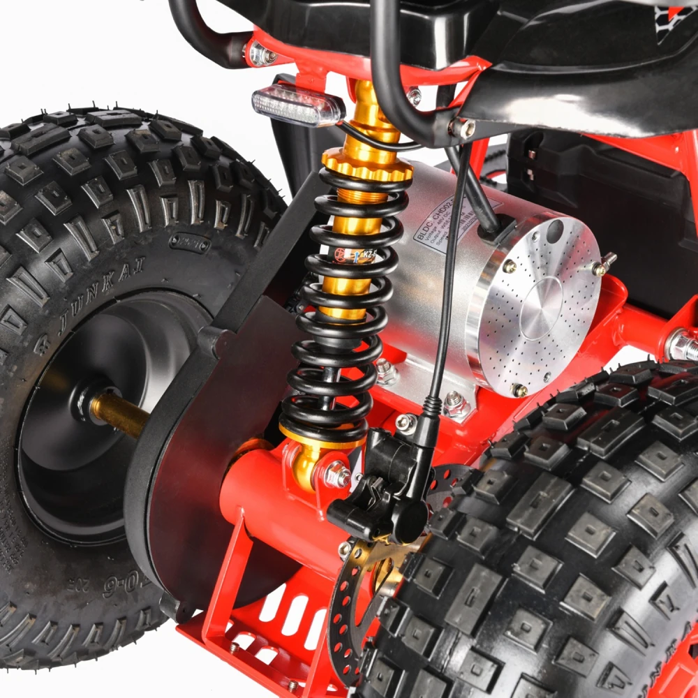 Квадроцикл представлен полной комплектацией, рассчитан на возрастную категорию от 3 до 9 лет. При мощности двигателя 1500 Вт способен развивать серьезную скорость – до 49 км/час. Продолжительность пути на одной подзарядке составляет 50 км. Максимальная грузоподъемность – 95 кг.