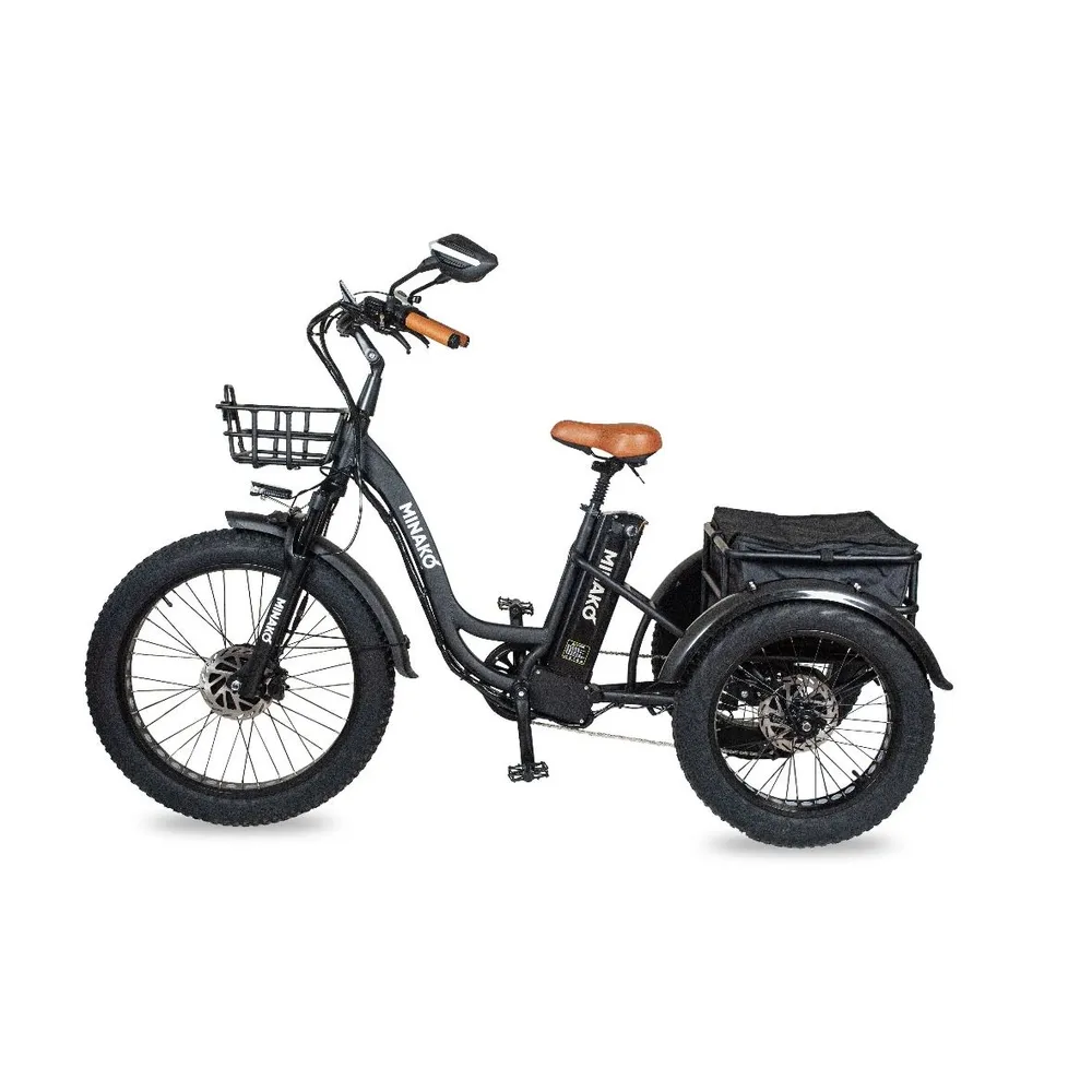 Электровелосипед Minako Trike – современная скоростная техника. Считается лучшей среди трехколесных электровелосипедов. Велосипеды minako trike устойчивые, безопасные и скоростные. Изготовлены в современном дизайне, относятся к категории удобных, комфортных и скоростных. Подходят разновозрастной категории пользователей. Купить электровелосипед Minako Trike по выгодной цене можно на нашем официальном сайте интернет-магазина. Качественные электровелосипеды minako изготовлены из прочного материала. Для комфорта пользователя, производитель в моделях предусмотрел вместительные корзины. Имея хорошую вместимость электровелосипед trike можно использовать для доставки. При мощности электромотора в 500 Вт, велосипед minako без труда набирает скорость до 45 км/час и преодолевает до 45 км на одном заряде. Технические параметры считаются лучшими и отличными в своей линейке. Безопасность эксплуатации гарантирована фирменными тормозами, стильными зеркалами заднего вида и наличия информационного дисплея. Среди официальных компаний бренд minako завоевывает лидирующие позиции. Для покупки или заказа техники предлагаем оставить заявку на нашем сайте.