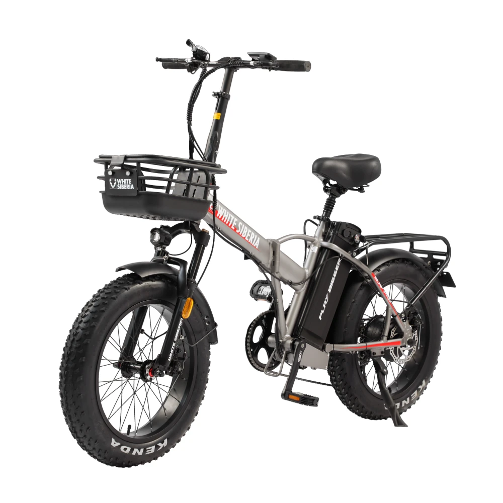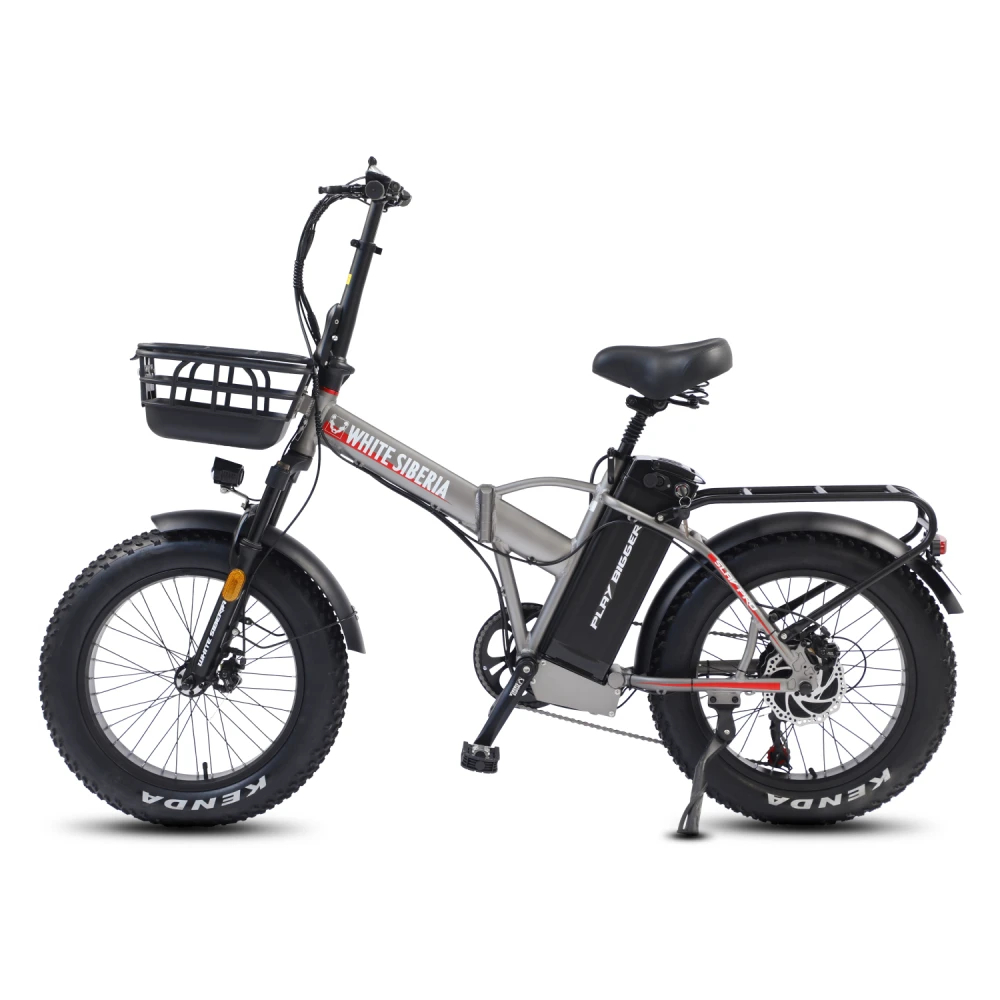 Электровелосипед WHITE SIBERIA SLAV PRO 1000W в матовом сером цвете – компактная эргономичная техника станет преданным другом на ежедневных прогулках. Байк выглядит современно и привлекательно. Идеально подходит для эксплуатации в пределах города и пригорода. Для приобретения модели по лучшей стоимости, получения бесплатной консультации предлагаем связаться с нами по телефону или в онлайн-режиме. Электробайк оборудован мощным электродвижком на 1000 Вт. Рама – усиленная, облегченная из авиаалюминия. Батарея с параметрами 48V 13A размещена за подседельной частью в защитном блоке, исключающем попадание влаги, механическое воздействие. Седло – удобное, регулируемое, повторяет анатомические части тела. Наличие передней корзины высвобождает руки, увеличивает степень удобства при езде в магазин. Безопасность и исключение непредвиденных ситуаций обеспечены информационным дисплеем, который информирует о скоростном режиме, дальности хода и степени зарядки АКБ. Главным преимуществом облегченной модели (30кг) является возможность трансформации). В сложенном состоянии техника приобретает минималистичные размеры, удобные для хранения в гараже и транспортировке в машине.