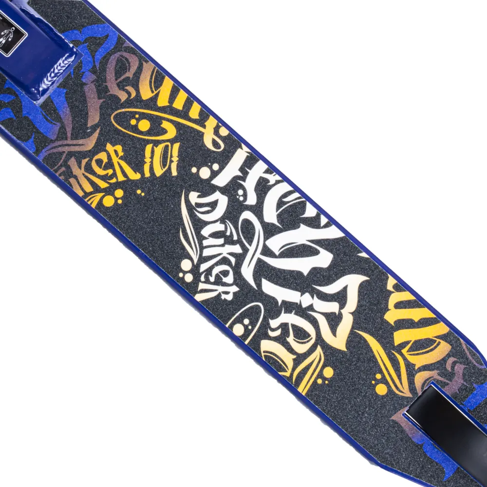 Самокаты изготавливаются в чёрных и фиолетовых тонах с дизайном «леттеринг». Грипсы 12 см, имеют два цвета с барендами из пластика.